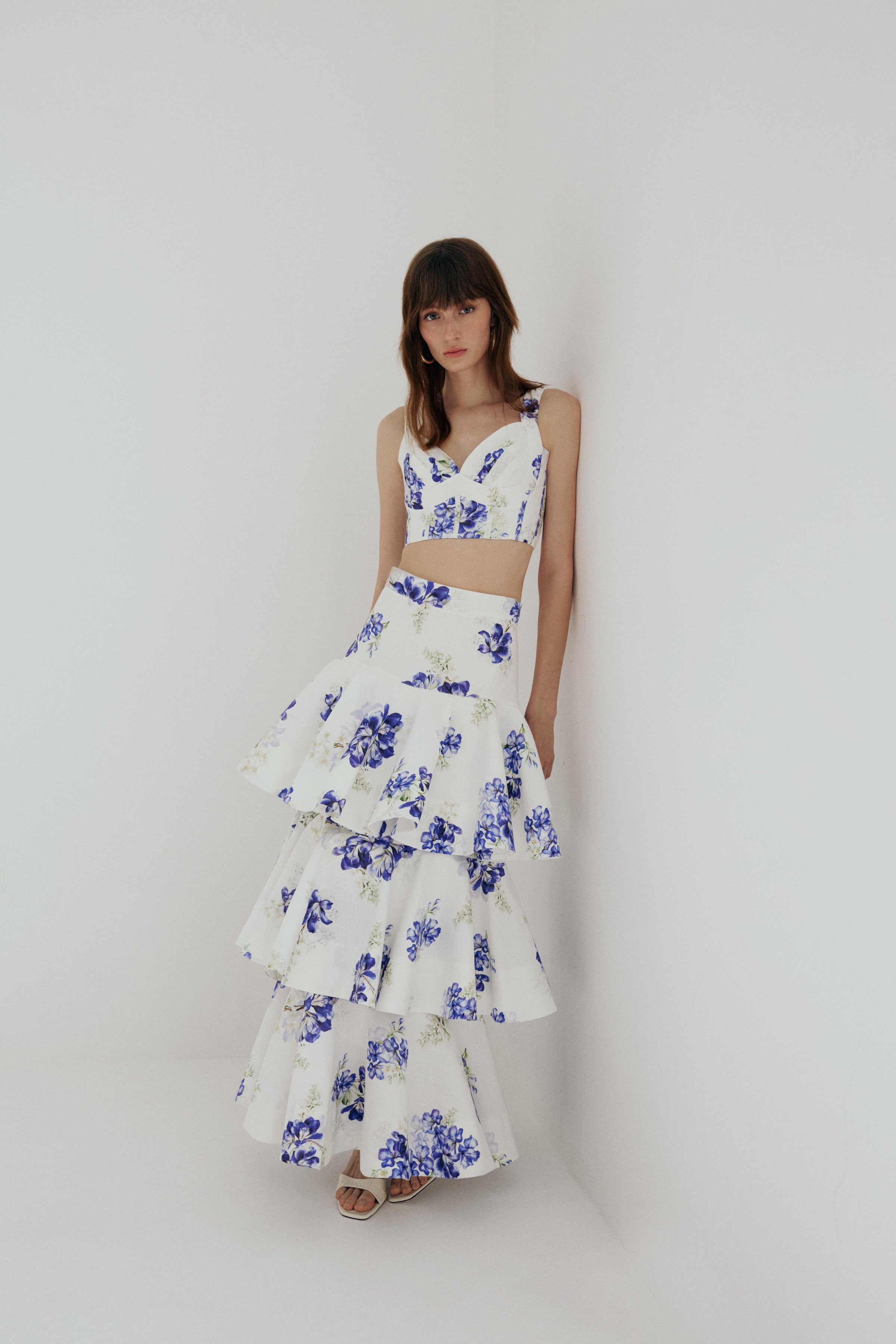 From our Sun Kissed Collection, the thick strap, heart neckline, corseted, floral Feryal Bustier.