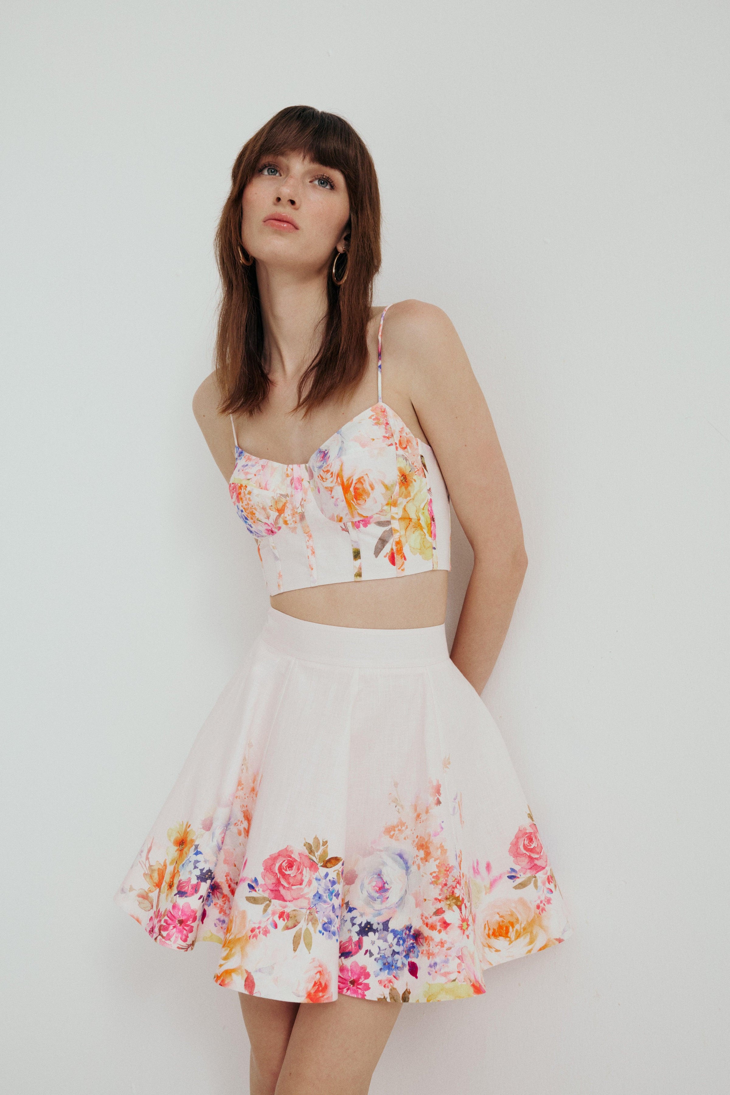 From our Sun Kissed Garden Collection, the floral, flared Rose Skirt.