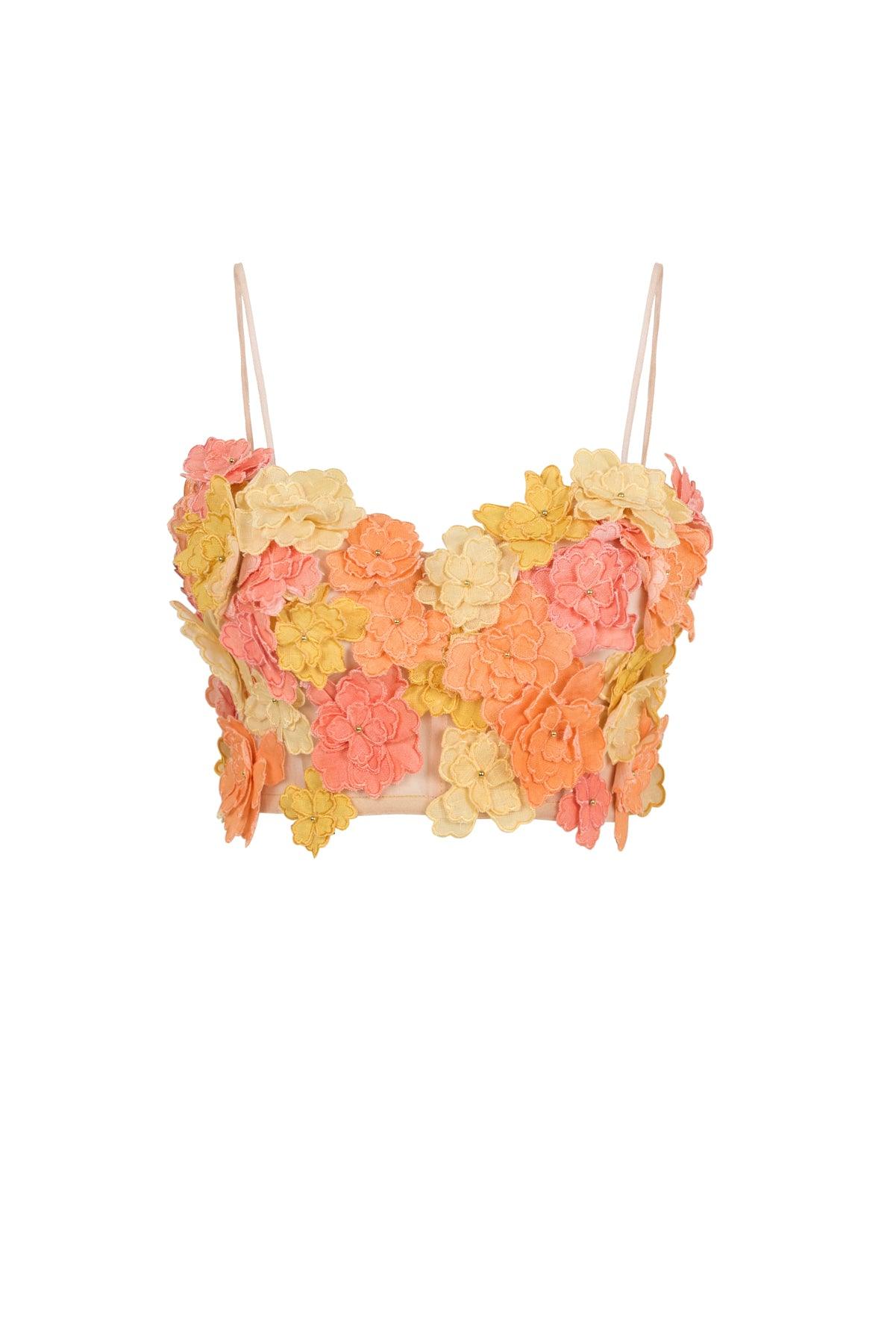 From our Sun Kissed Collection, the thin-strapped, three-dimensional floral, multicolored Soleil Bustier.