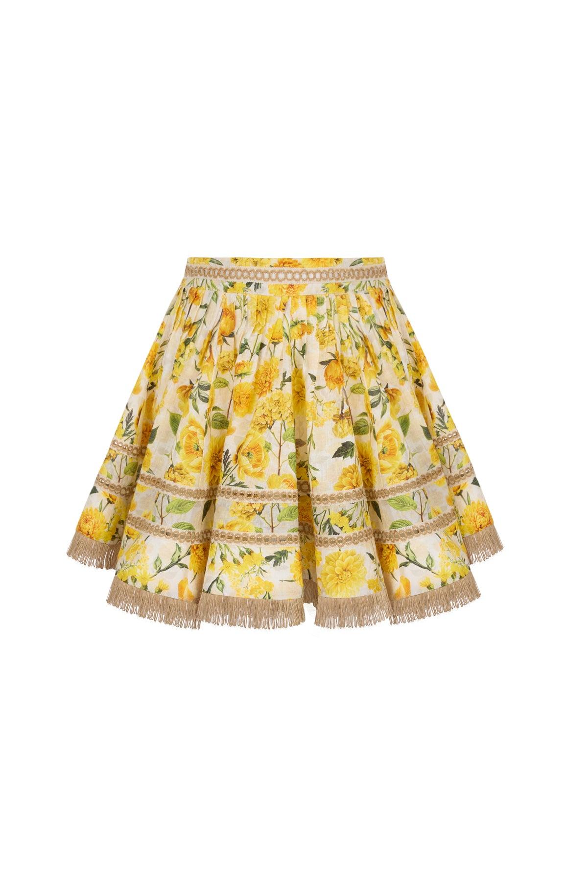 From our Sun Kissed Garden Collection, the floral, flared-cut Solina Skirt.