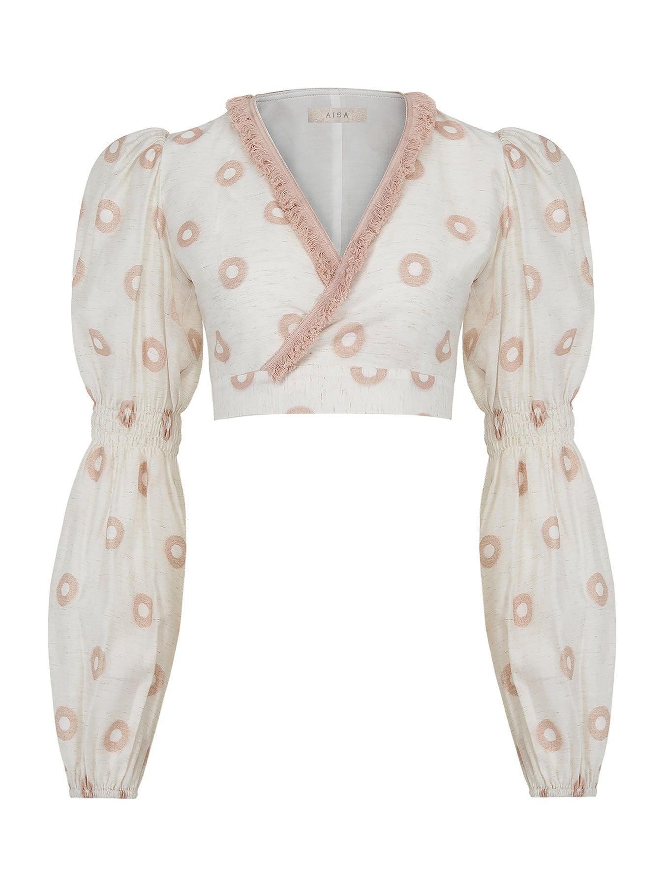 Terra Blouse from our Blossom & Sun Collection. Long sleeve, v-neck, tasseled design crop blouse.