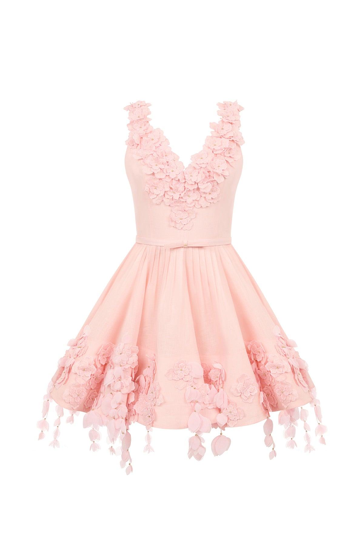 From our Sun Kissed Collection, the strappy, back-cutout, three-dimensional floral mini Candy Dress.