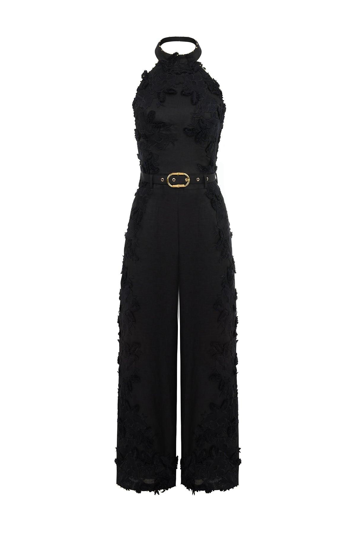 From our Sun Kissed Collection, the halter-neck, three-dimensional floral Aurelia Jumpsuit.