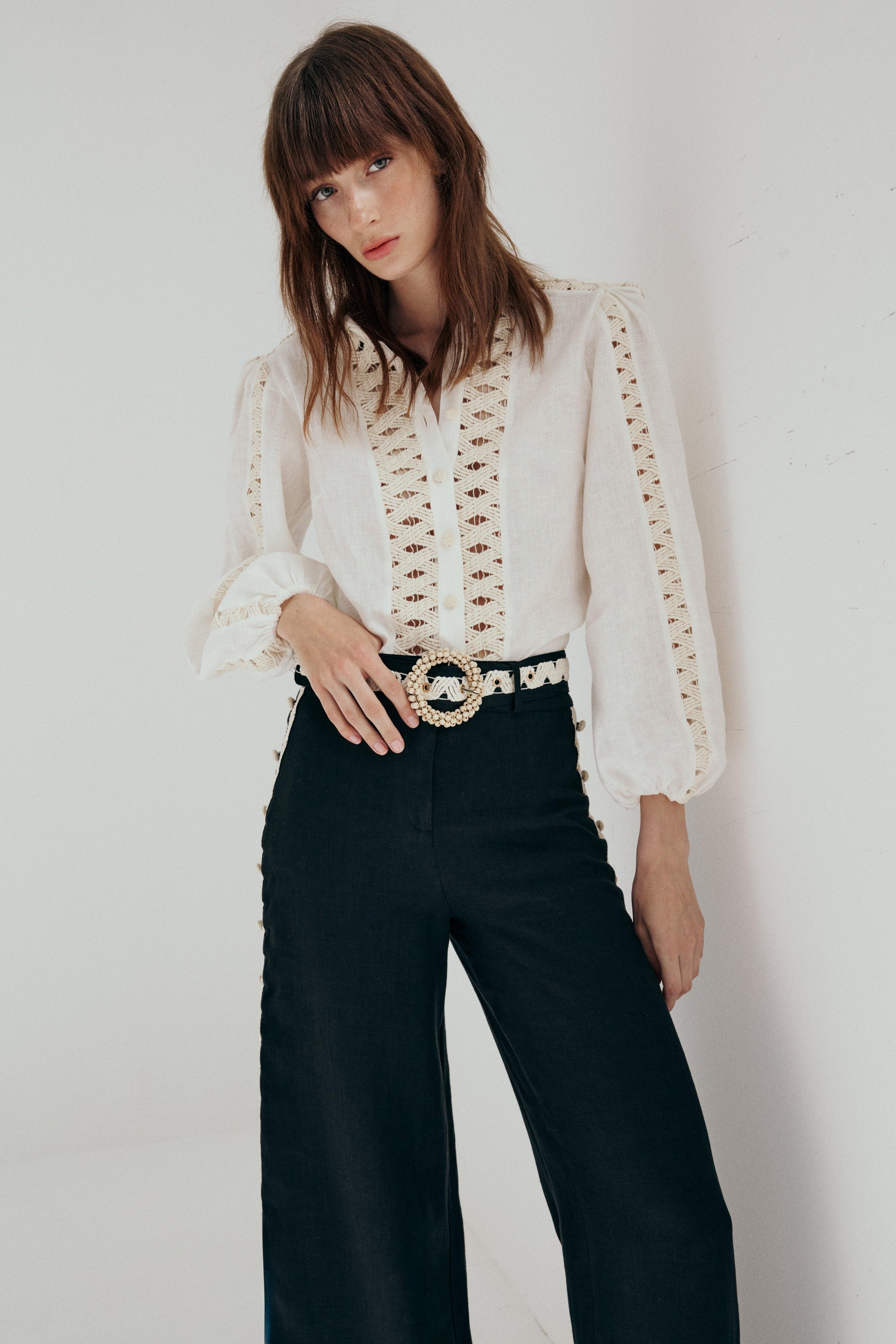 Sun Kissed Koleksiyonumuzdan, ip nakış detaylı, kemerli Lea Pantolon Siyah.